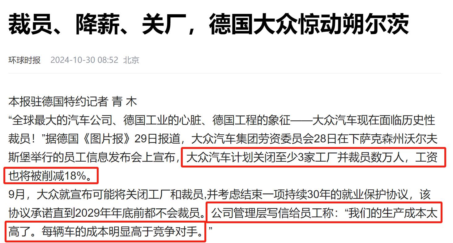 因此,歐盟註定最後會因爲做舔狗,舔到最後一無所有。而且現在跡象就已經顯示出來了。德國大衆最近陸陸續續傳出裁員、降薪、關廠的消息,更是官宣了關閉三家工廠,裁員數萬人,工資削減18%的消息。
