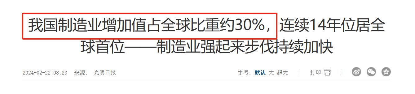 現在他們猛然發現,對華貿易制裁這麼多年下來,老美沒有削弱中國的工業,反而是中國逐漸實現了產業升級,工業製造能力越來越強大。2023年,中國製造業增加值佔全球比重約30%;據海關統計,今年前三季度,同期首次突破32萬億元,同比增長5.3%,季季過10萬億元。
