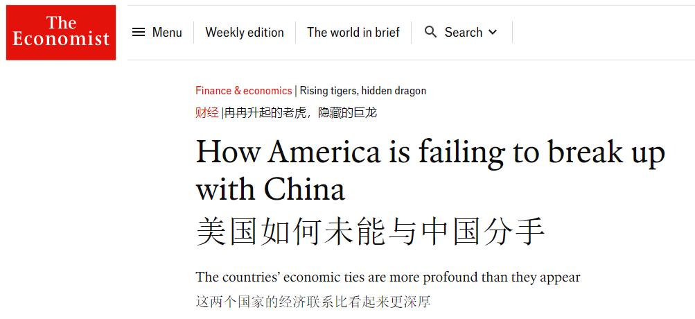 其次,也不知是華爾街日報,美國大量的媒體和智庫,比如:“金融時報”“紐約時報”“巴倫週刊”“經濟學人”等等,他們的報道清一色地表示,美國搞脫鉤不現實,老美根本離不開中國。