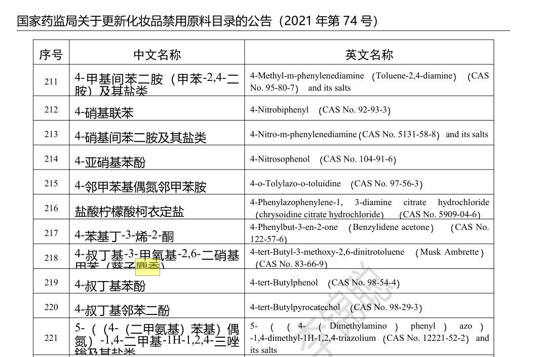 化妝品禁用原料目錄 (圖片來源:《化妝品安全技術規範》