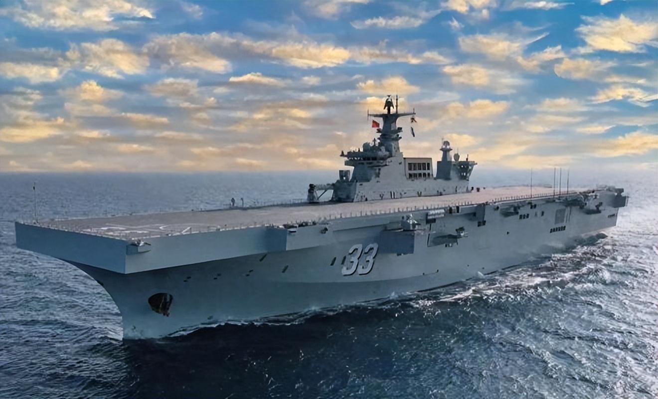 075兩棲攻擊艦是滬東中華造船廠,爲海軍打造的先進艦艇,長度爲232米,艦艇寬度爲36.8米,使用全柴聯合動力支持,最快的航速每小時能達到23節,約爲每小時42.6公里,可以搭載1600名兵力。