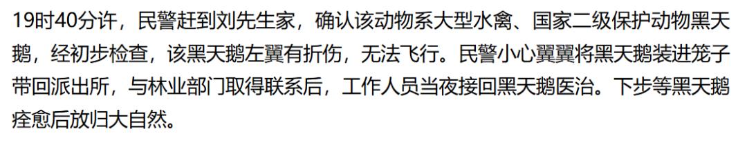 2023年上觀新聞的報道,將黑天鵝錯誤描述爲國家二級保護動物