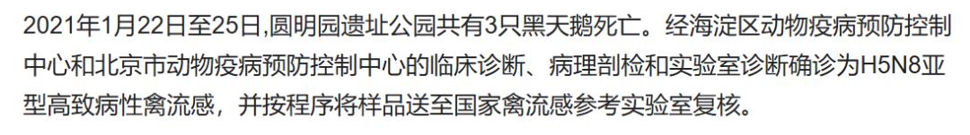 2021年,圓明園3只黑天鵝感染禽流感後死亡 (圖片來源:人民日報)