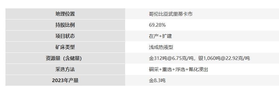 這個被盜採的金礦是武裏蒂卡金礦,位於哥倫比亞,黃金資源大概是353噸,平均品位9.3克每噸,屬於超高品位的大型金礦,2023年,產量是8.3噸。