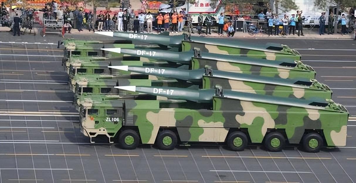 中國擁有多款反艦能力的導彈,東風17型導彈有着高超音速滑翔飛行器HGV裝置,飛行速度爲10馬赫,末端加速極限速度能達到18馬赫,具有隱身和突防能力,射程2500公里,彈頭精準度偏差能達到控制在30米範圍內,甚至控制在幾米之內的誤差值。