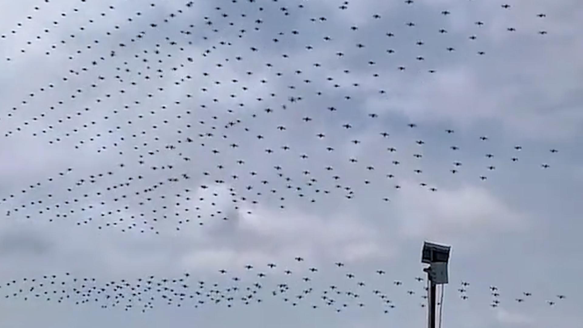 彩煙表演高難度動作也很精彩!接下來重頭戲,無人機作戰!九天無人機,簡直跟星際爭霸情景再現一樣,自帶任務的機器撲面而來,不受道德約束,重點這玩意價格便宜可以批量生產,腦補下一羣小蜜蜂啊,飛到人羣中,左嗡嗡右嗡嗡,然後突然嘣嘣蹦!