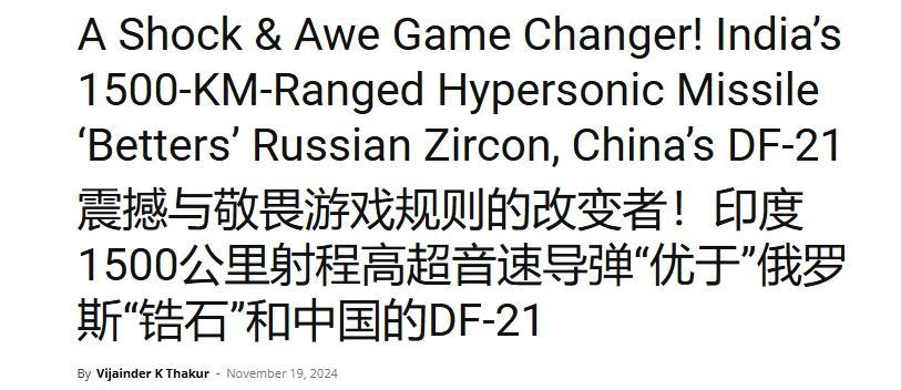 更重要的是,印度說它的高超音速導彈,是要優於咱家的航母殺手東風21。