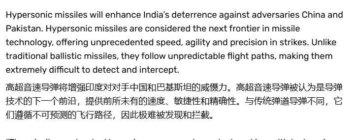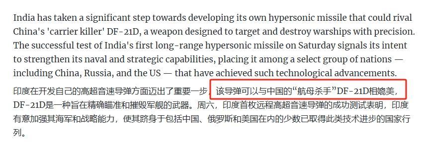 哎,不對,什麼相媲美,人家說的是,要優於咱家的東風21。還說印度試射高超音速導彈,中國和巴基斯坦瑟瑟發抖。