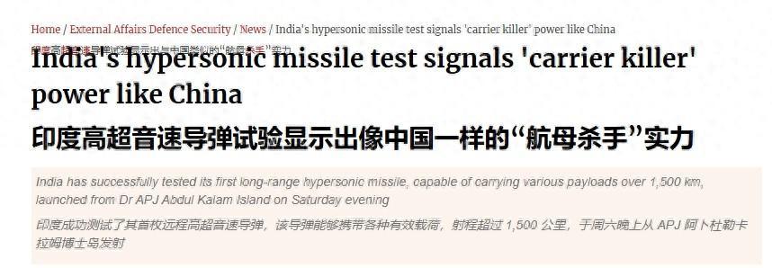 印度膨脹了,揚言自家高超音速導彈,優於咱家航母殺手東風21