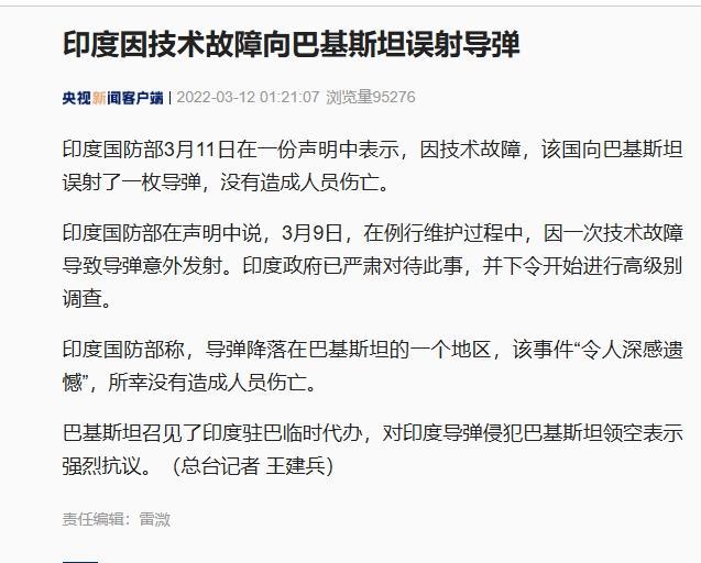 確實啊,印度每次試射導彈,咱們和巴基斯坦確實有點害怕,爲啥呢,因爲它射不準啊,發射出去之後,經常迷路。你看啊,2022年,印度對導彈系統進行例行檢查,結果不知怎麼滴,發射了一枚火箭,發射就發射吧,還發射到巴基斯坦了。