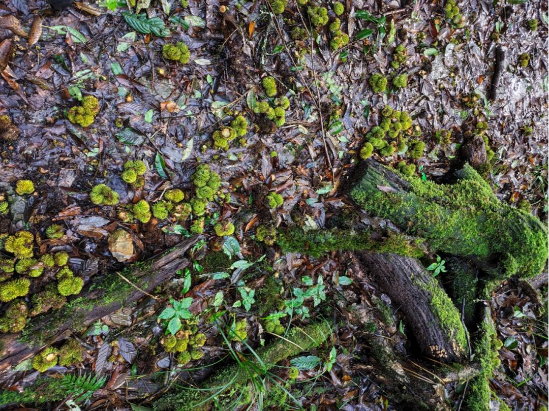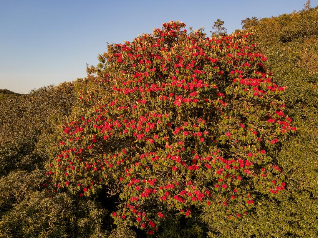 然而,細心觀察,四季的氣息也滲透在日常生活裏。春天,馬纓杜鵑與露珠杜鵑在山間競相綻放,藍喉太陽鳥、綠喉太陽鳥、黃頸鳳鶥等鳥兒絡繹不絕的在米團花間穿梭。五四青年節期間,管護局門口的臨時趕集長街延綿幾里,彝族三絃舞的歌聲響徹;夏夜,坐在哀牢山生態站旁邊的杜鵑湖畔,普洱樹蛙的鳴聲和時不時迴盪的赤麂叫聲裏,仰望星空,夏季的大三角和銀河在眼前璀璨奪目;秋天,八月瓜和綠蔭間偶然浮現的黃葉紅葉,伴隨着掉落一地的殼鬥科果實,靜靜訴說着季節的輪換;冬天,清晨起來,門前林地草甸間的霧凇如夢幻般閃爍,附近村落每家每戶邀約慶祝新一年的殺豬飯溫暖着我們的心。這些事物共同構成了我們在哀牢山的日常生活。