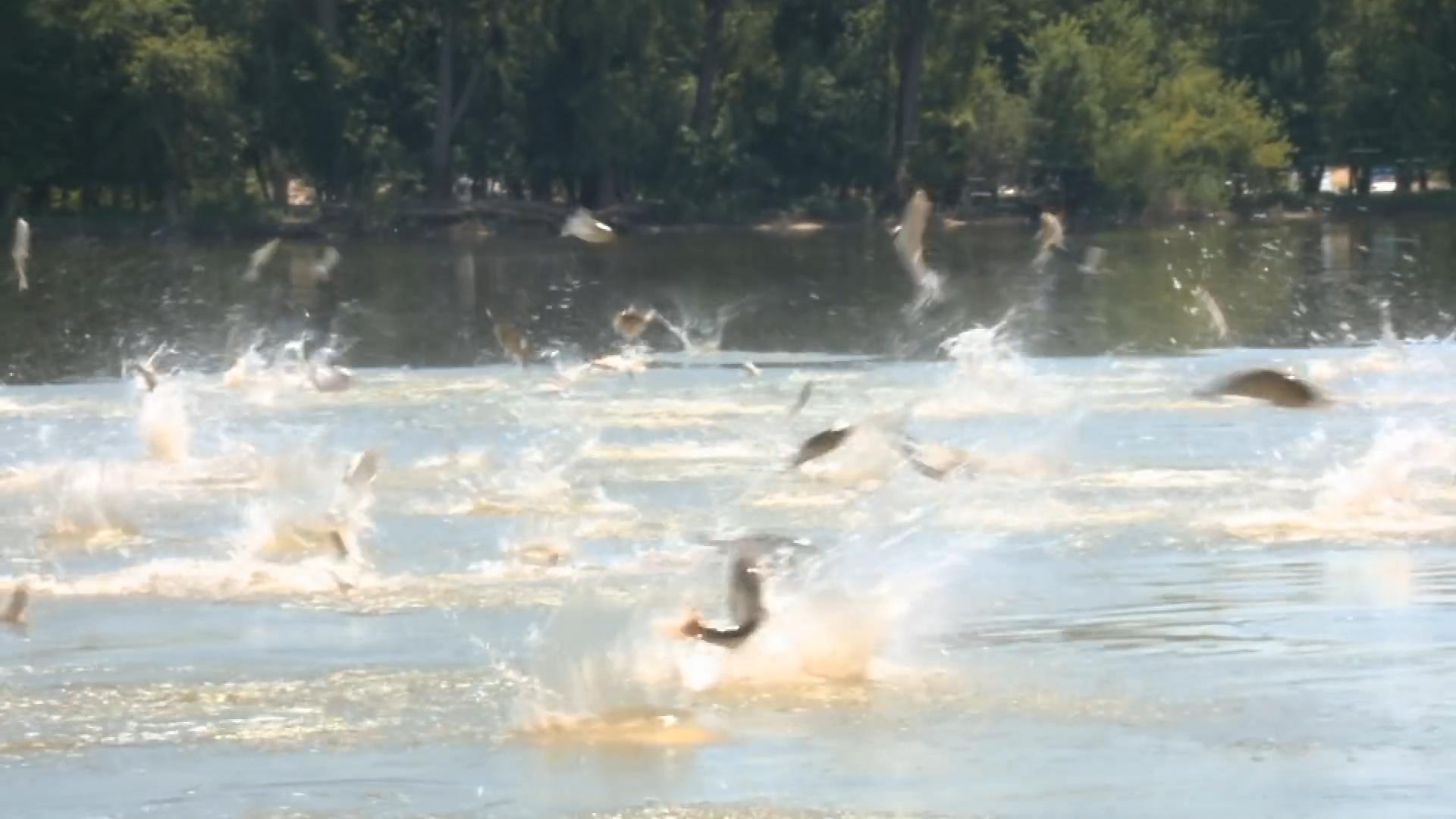 二三十斤的魚傾斜而下,堆積如山氣的美國人頭大!要問爲啥?受害者現身說法!,2002年,在美國伊利諾伊河,一位男子,參加了特意爲消滅鯉魚策劃的空中射魚