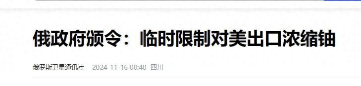 俄羅斯這回,是打到美國的七寸了,俄羅斯宣佈,臨時限制向美國出口濃縮鈾,這下子,美國的能源真的是四面楚歌,要麼就是跟俄羅斯服個軟,要麼就要跟中國認個錯了,爲啥呢?因爲鈾