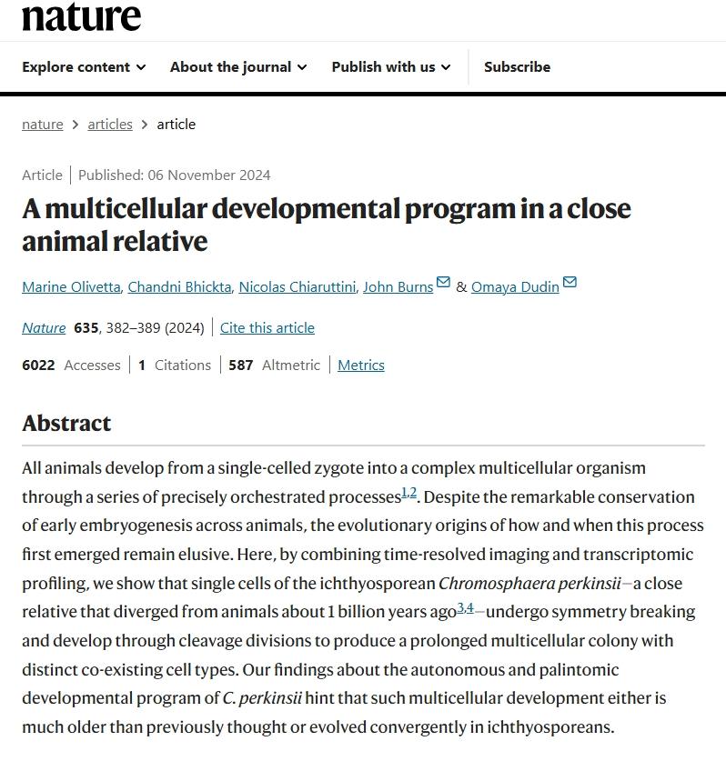 Olivetta, M., Bhickta, C., Chiaruttini, N. et al. A multicellular developmental program in a close animal relative. Nature 635, 382–389 (2024). https://doi.org/10.1038/s41586-024-08115-3