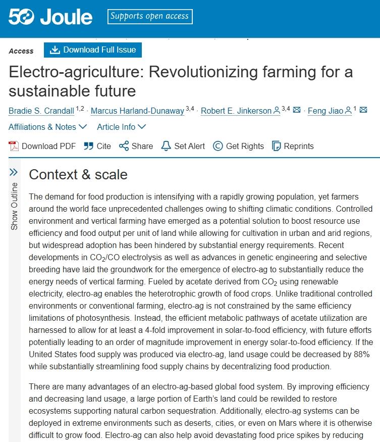 Crandall, Bradie S. et al. Electro-agriculture: Revolutionizing farming for a sustainable future, Joule, Volume 8, Issue 11, 2974 - 2991