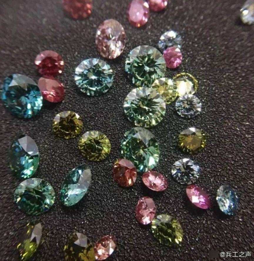 中國兵器工業集團豫西集團中南鑽石有限公司生產的彩色鑽石(圖片來源:微博@兵工之聲)