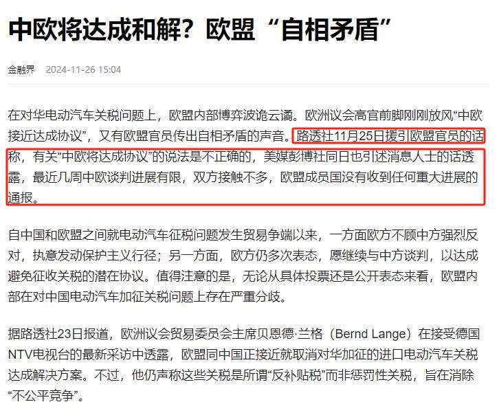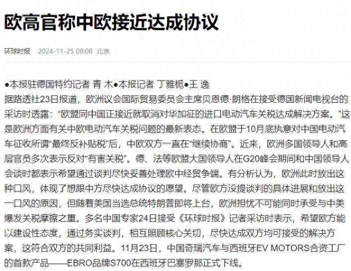 剛給中國電動車加稅,歐盟就擰巴上!先是歐盟主席說:中歐接近達成協議,不加稅了。隨後又有歐盟官員蹦出來說:根本沒這回事。
