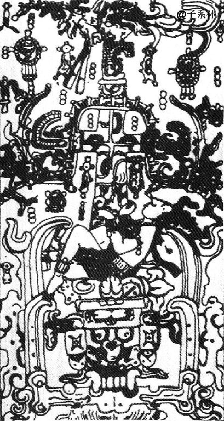 比如說下圖這個“瑪雅人宇航員浮雕”。浮雕中的瑪雅人半躺着坐在一個容器之內,這個容器形狀像一個馬桶橛子,下面還在噴火,讓人聯想到了宇航員。