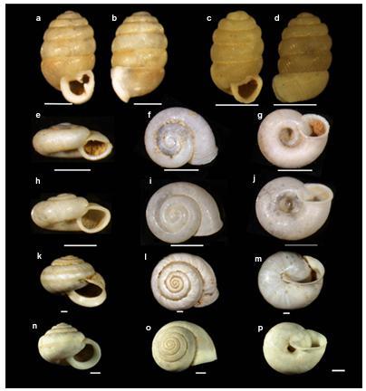 黃土地層中不同種屬的化石蝸牛殼體照片。其中的白色短線代表1mm。(圖片來源:Wu et al., 2018)