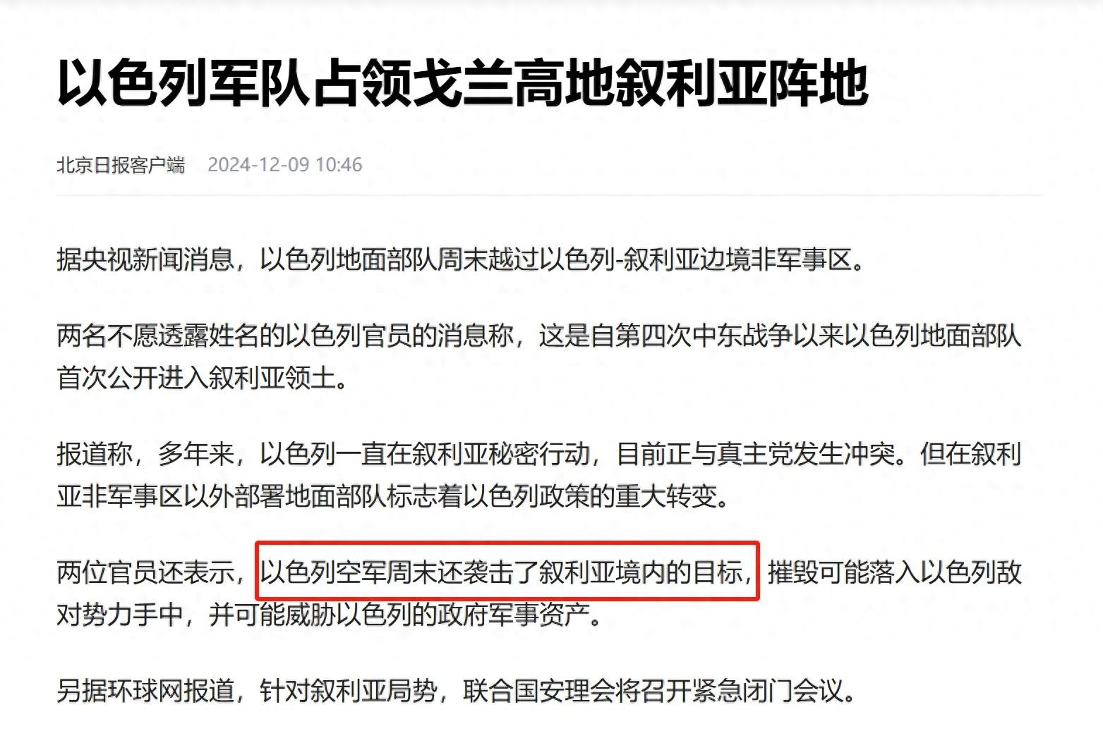 現在,阿薩德政權剛被推翻,以色列軍隊立馬越過敘以軍事緩衝區,而且,內塔尼亞胡還聲稱,戈蘭高地永遠是以色列不可分割的一部分。啊,啥時候成他的了?那麼這時候,我就想請問,剛佔領大馬士革的反對派武裝“解放敘利亞”聯盟,有能力驅逐以色列軍隊嗎,會收復戈蘭高地嗎?要知道,敘利亞境內有很多反對派武裝,解放敘利亞不是唯一的武裝組織,不同的武裝組織爲了爭奪自己的地盤,打得頭破血流,現在阿薩德政權被推翻了,這些反對派武裝會不會趁機擴大自己的勢力範圍,到時候敘利亞內戰一爆發,會不會有 反對派武裝選擇割讓戈蘭高地,以換取以色列和美國的支持?
