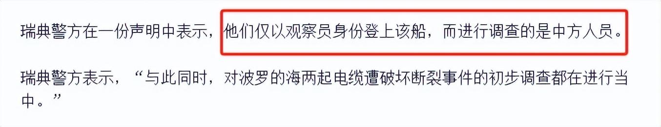 結果他們懷疑是中國散貨船“伊鵬3號”乾的,理由僅僅是,這艘船在11月15日從俄羅斯烏斯季盧加港出發,前往埃及的塞得港。事發時剛好行駛在電纜斷裂海域。他們就懷疑,伊鵬3號在俄羅斯停留期間,接受了俄羅斯的好處,要破壞波羅的海的海底光纜,於是,瑞典當局就通緝這艘船,也導致伊鵬3號被迫在丹麥與瑞典之間的公海滯留一個月左右。