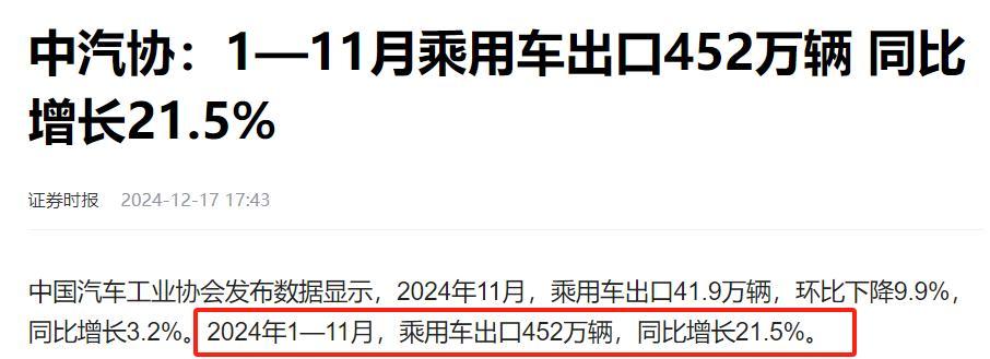 如果看數值沒啥概念的話,咱們來做個比較。這幾年咱們汽車出口非常生猛,都已經成爲全球第一大汽車出口國了。今年1-11月,中國汽車出口同比增長21.5%,半導體出口僅僅低於汽車出口0.1%,幾乎是持平的。