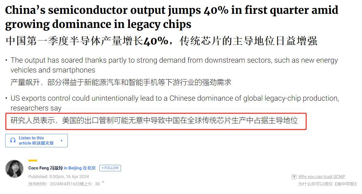 最近美國對中國芯片產業發起301調查,主要是限制中國成熟製程芯片出口到美國。