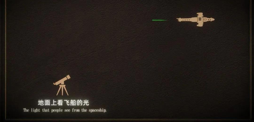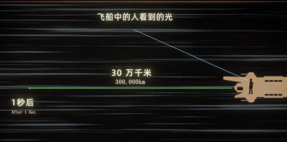 請大家跟上我的思路,想一想,這不是一件非常矛盾的事情嗎?站在飛船上的人,看到的是眼前的光嗖的一下就跑到宇宙深處了。但站在地面上的觀察者,看到的卻是飛船上的光和飛船慢慢拉開距離。