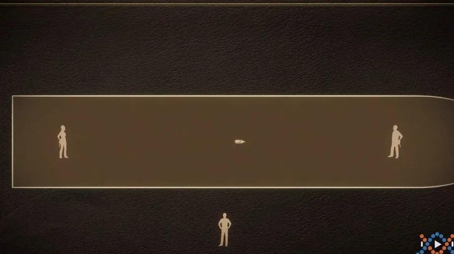在一列亞光速疾馳的火車上,有兩個人站在車廂的兩頭進行決鬥。他們的決鬥規則是這樣:在倆人的正中間有一盞信號燈,燈亮就是拔槍信號,生死由命,看誰槍快。當然,倆人的槍是一模一樣的。