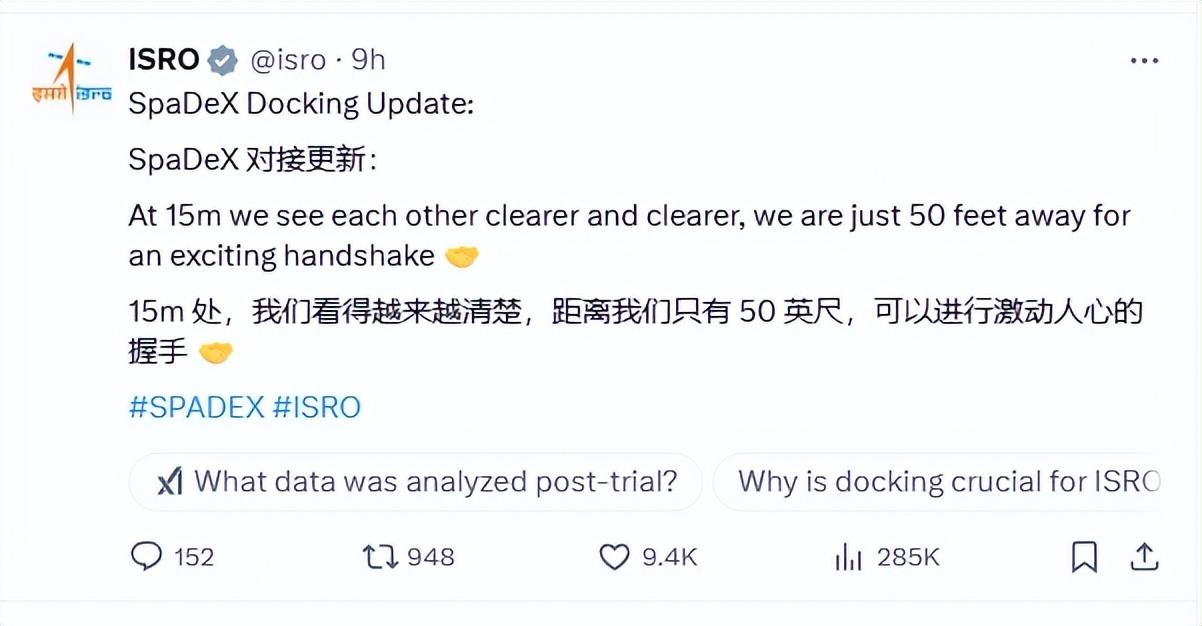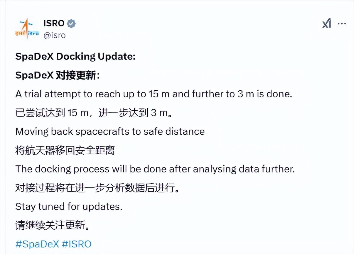 但是,印度航天要是能那麼順利,也就不叫印度航天了,這次對接任務也一樣。