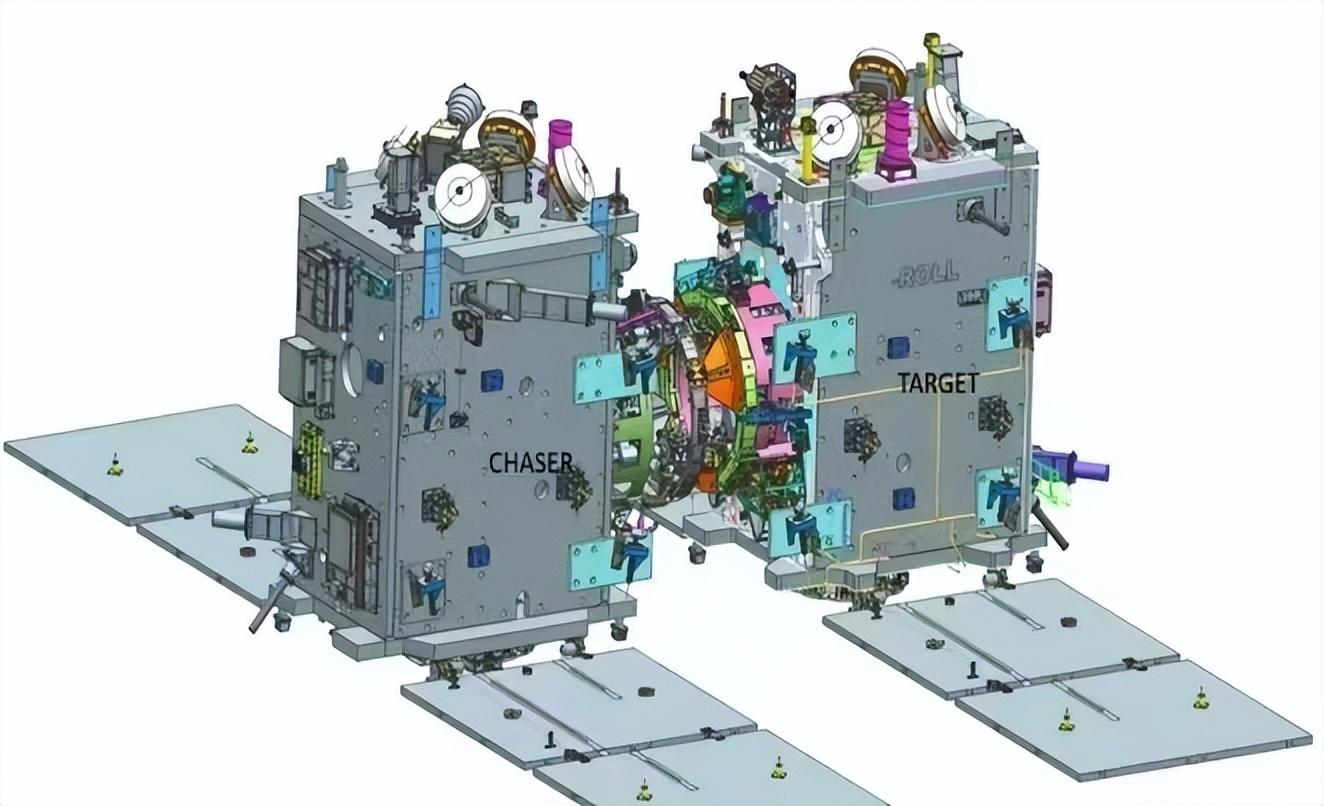 這兩顆衛星保持在10-20公里的間距,然後一星慢慢追趕二星,經過5公里、1.5公里、500米、225米、15米和3米的距離,最終實現對接。兩枚衛星對接後將進行電力傳輸,隨後分離並各自繼續運行,預期壽命是2年,也就是說這倆衛星不光要執行交會對接任務,他們各自還有其他任務。