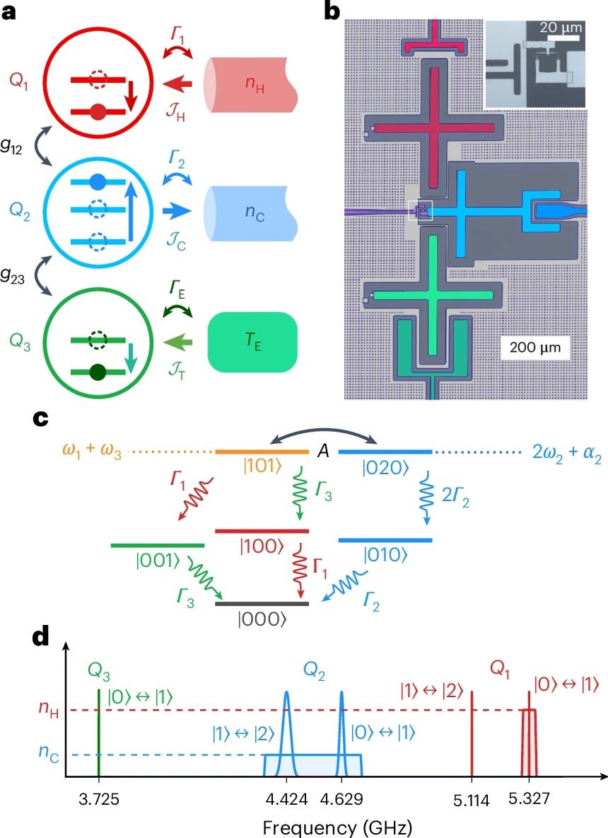 最令人驚喜的是,整個系統都位於稀釋製冷機內部,利用溫度梯度來爲Q1提供能量,完全不需外部信號和能量支持,就實現了Q3的自動冷卻,不僅大大簡化了系統設計,還降低了系統複雜性和能耗,完全可以說是革命性的發明。