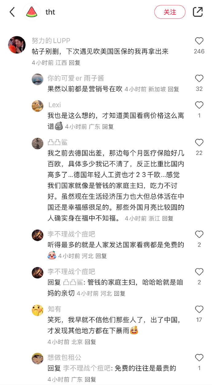 還有一個外國人問,中國醫療服務如何,通常需要花多少錢。然後一覺醒來天塌了,爲啥呢,因爲中國醫療太便宜了。
