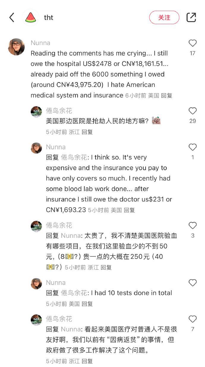 還有個人說,看到這些評論我哭了,我還欠醫院2748美元,而我已經還清了我欠的6000多美元,大概意思就是自己欠的錢已經還完了,但是架不住利滾利啊。