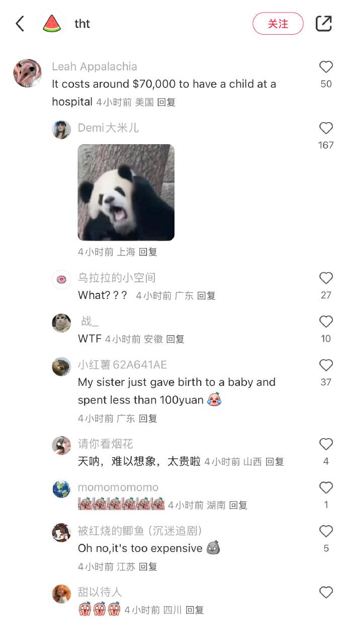 有個美國網友說,在醫院生孩子大約需要7萬美元,不貴,也就是50多萬人民幣。而中國網友說,我姐姐剛生了個孩子,花了不到100元。