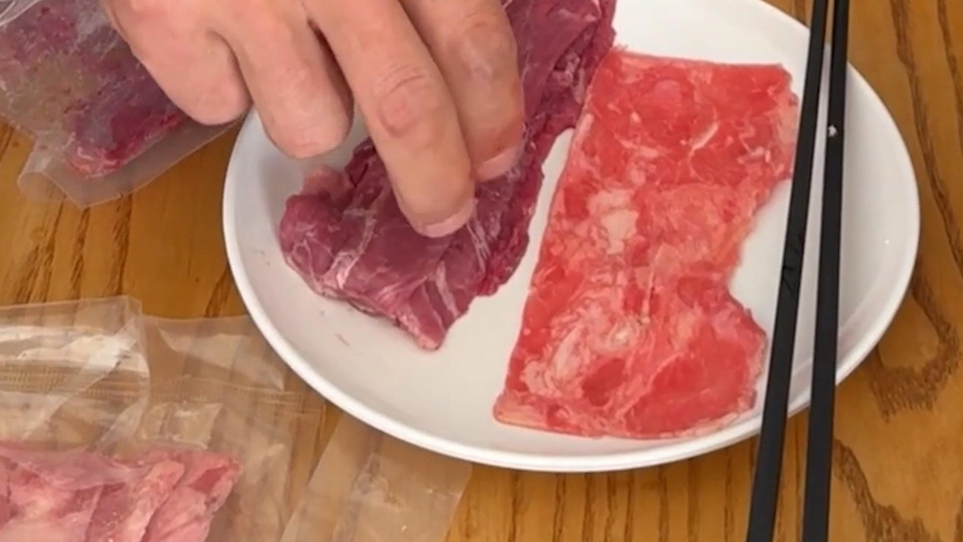 顏色深淺肉的紋理,頗費周折後, AB貨算實錘了,全程剛哥也是配合,站在風口浪尖的他是賠償者,也是受害方,畢竟誰敢第一次帶貨,就敢明目張膽把家人誆!回顧剛哥的所做所爲,犯不着爲一次帶貨,把自己正能量賬號埋葬! 要怪只能怨賣肉方,人前人後兩個樣,做個局騙兩方,既利用主播知名度賣A貨,轉身調包B貨誘導購買方!