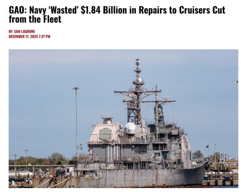 美國前陣子發了一個報告,這個報告措辭還挺嚴厲的,說美國海軍浪費了近20億美元翻修4艘老化的巡洋艦,而最後卻讓這些巡洋艦退役。