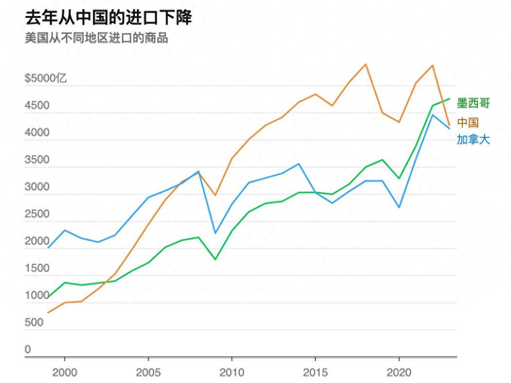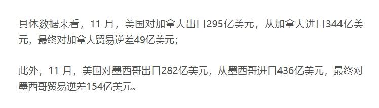 過去美國也知道這個漏洞,但是還顧忌着和墨西哥、加拿大的關係,畢竟這倆是自己的小弟,你就算再狠心,也不能拿自己的小弟下手啊。但是特朗普不講道義,他非常看不慣加拿大和墨西哥,爲啥呢,因爲美國對這倆存在貿易逆差,2023年美國對墨西哥貿易逆差154 億美元,對加拿大貿易逆差44億美元,特朗普是無法容忍貿易逆差存在的,直接對墨西哥、加拿大加徵25%的關稅。