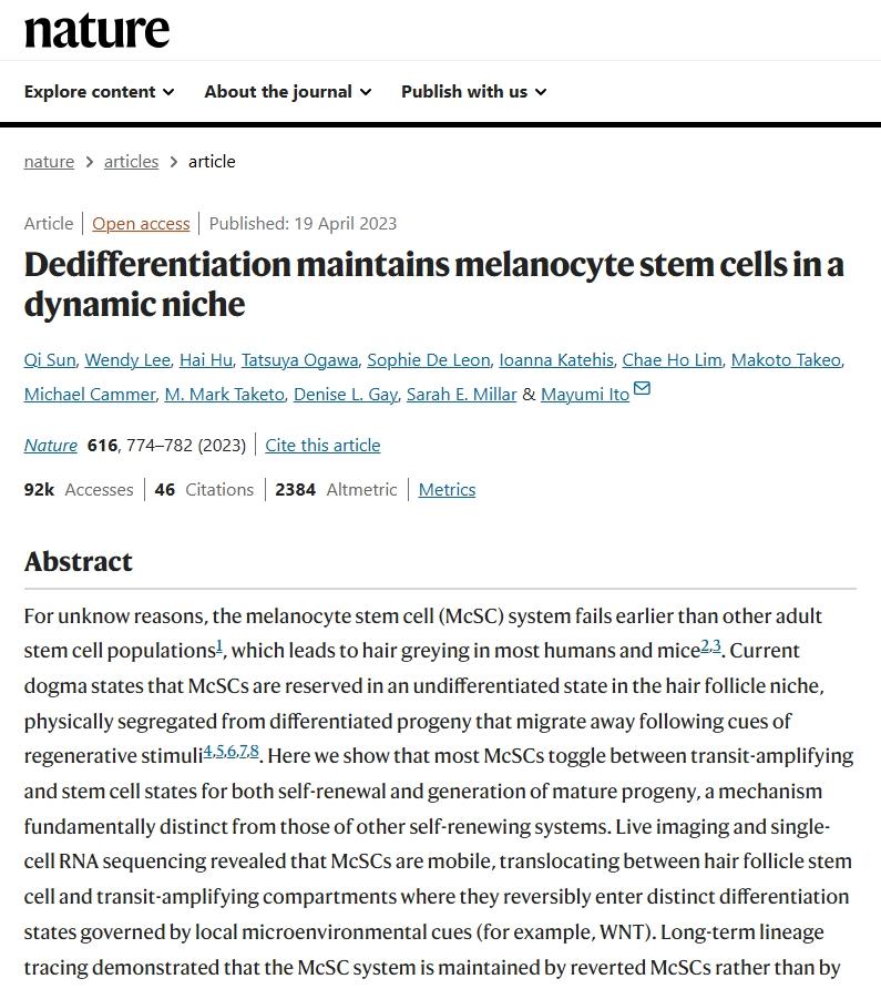 這項研究的主要負責人伊藤真由美博士發現,這些"畫家"細胞有一個特別之處:它們像變色龍一樣可以在不同狀態之間轉換。這種能力使它們既能保持自我更新,又能產生色素。但隨着年齡增長,它們逐漸失去了這種"變色龍"般的特性。