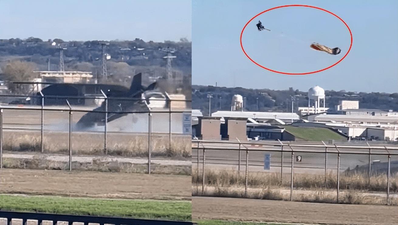 這次視頻拍攝的很清晰,你能看到這架F35的起落架已經放下來了,說明它是想降落的,但是發動機沒有開動的痕跡,說明它是失去動力的情況下,自由落體的,這個過程中飛行員已經彈射逃生了,沒有任何人操作,飛機是旋轉着下降,不知道的還以爲美國在玩落葉飄。