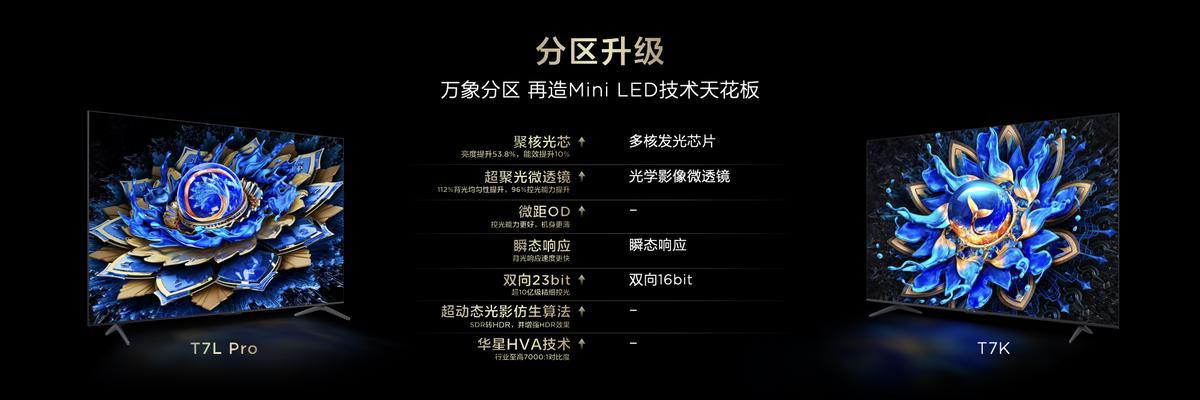 當然,僅僅有一塊好屏是不夠的,沒有出色的控光技術,更多的普通分區對畫質的提升不大。爲了發揮這塊高端屏的優勢,控光方面,TCL T7L Pro 系列和 Q9L Pro 系列均搭載了萬象分區技術,通過對背光到成像全鏈路7大環節的技術優化,最終實現一區頂多區的控光效果。