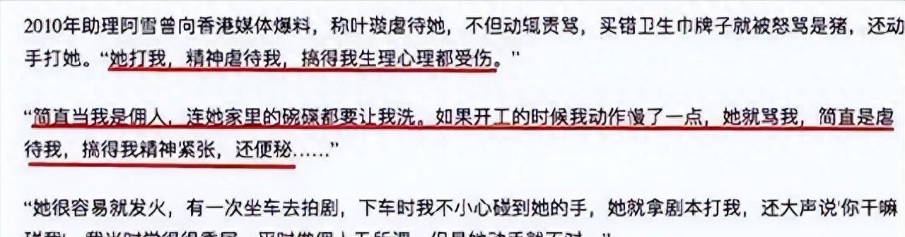 她不僅要求助理處理所有大家能想到的家務活,還要24小時待命做到隨叫隨到,如果助理有任何遲鈍,葉璇就會大發雷霆,辱罵助理“無能”,她甚至動手打罵助理,助理的身上常有淤青。