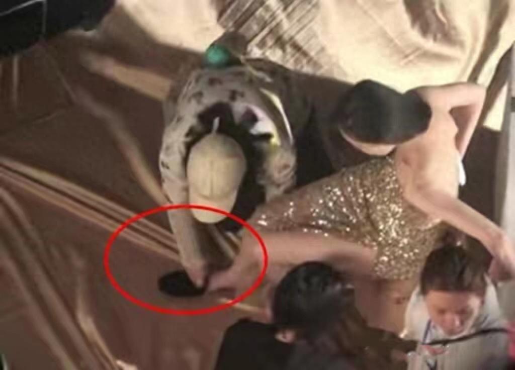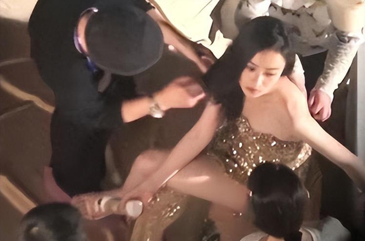 倪妮全程仰起頭沒有低頭看自己的鞋子,也沒有伸手去接,完全一副等着人伺候的架勢。