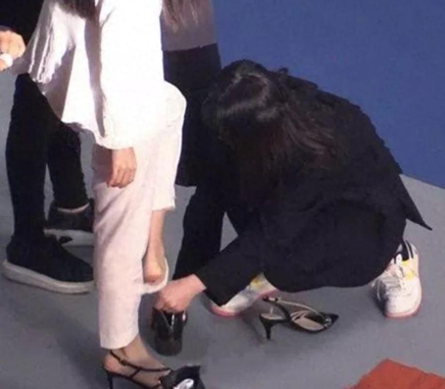 這已經不是倪妮第一次出現“不換自己的鞋子”了,早些年她拍廣告時,現場就有五六個工作人員圍着她忙前忙後,她卻悠閒地坐着,等着別人給她穿鞋。