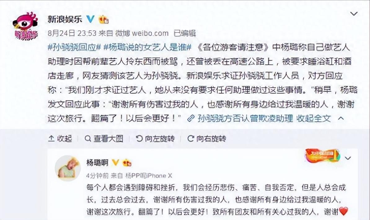 孫驍驍的刁難行爲曝光後,楊璐才逐漸走出陰影重新做人,他表示人生就是這樣,遇到惡人要保持正直善良的本心,如今的他過得很滋潤,而孫驍驍依然我行我素,仍舊是那個心高氣傲的公主。