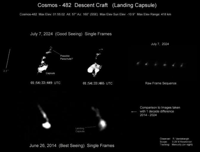 荷蘭衛星追蹤者範德伯格使用特殊望遠鏡拍攝的科斯莫斯482號着陸艙圖像