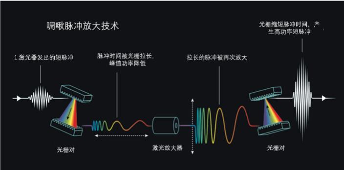 啁啾脈衝放大技術示意圖