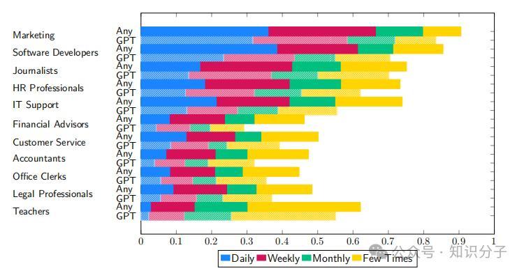 圖1 不同職業中使用AI工作的員工比例