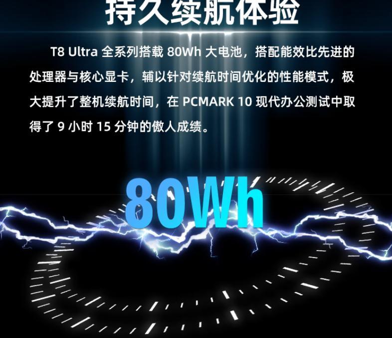 誰說遊戲本就得又厚又重?戰神T8 Ultra D51直接打破刻板印象!重量控制在2.08kg左右,塞進書包說走就走,圖書館、教室、宿舍無縫切換413。更絕的是,它還配備了80Wh大電池,日常辦公續航輕鬆撐過7小時,輕度使用甚至能接近11小時,徹底告別“插座焦慮”。