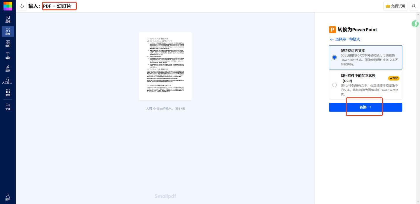 3、通過『Smallpdf』將PDF轉爲PPT